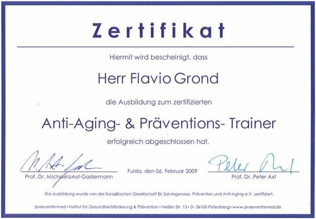 - Zertifikat Anti-Aging und Präventions- Trainer